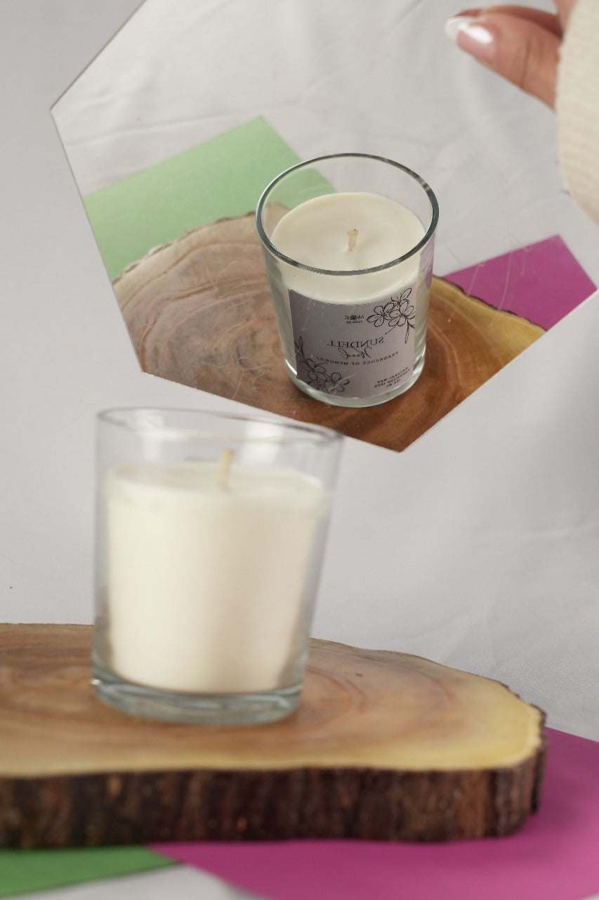 A beautifully scented candle that fills your home with a delightful fragrance, creating a cozy glow and warm atmosphere. It not only refreshes the air but also adds a charming decorative touch to your space.